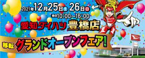 愛知ダイハツ豊橋店では、12月25日(土)~26日(日)に移転グランドオープンフェアを開催いたします。
